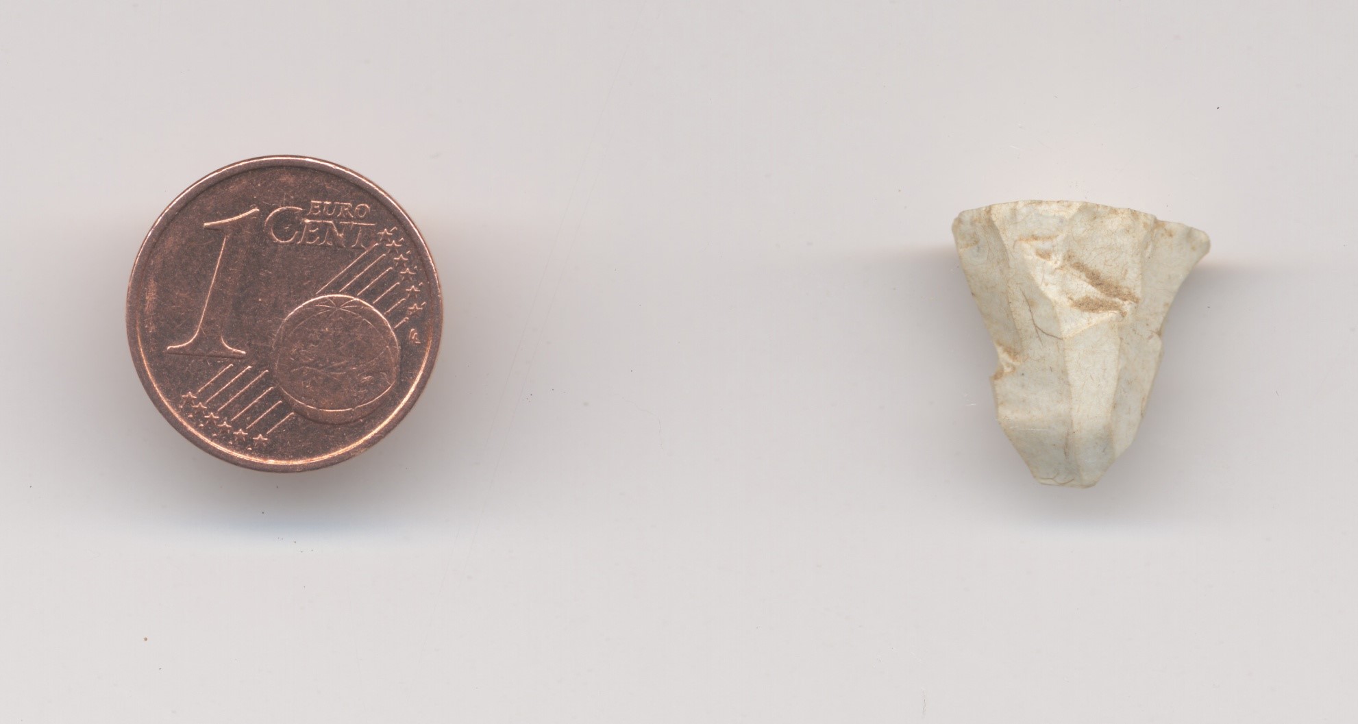 A small stone tool the size of a penny