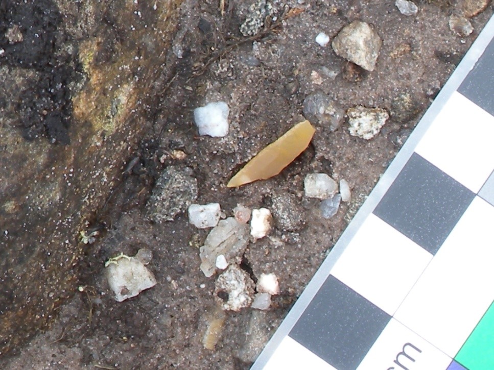 Many of these sites are most likely to be found through identifying stone tools – typically small flakes and blades of flint (although other materials were used in prehistory these can be hard to identify). The use of flint offers us one benefit in trying to find these sites: because flint is not naturally present in the Scottish mountains it looks distinctive enough to catch the eye.